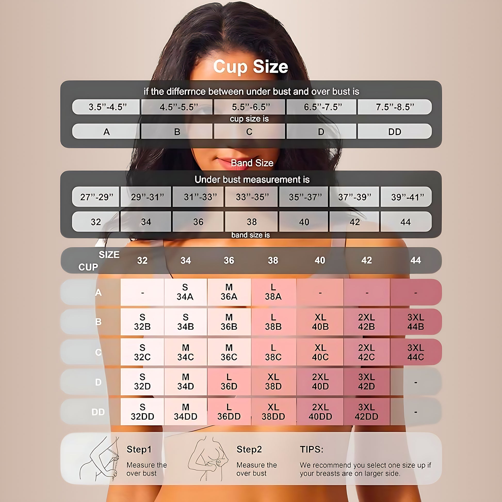 We get it – bra shopping online can feel like a gamble! To take out the guesswork, we created a super simple, step-by-step Sizing Chart [you can link this text to the chart image on your page]. Just grab a measuring tape! Pro Tip: If you're between sizes or prefer a more relaxed fit, we recommend sizing up. And if it’s still not perfect, our 30-Day "Love It Or Leave It" Guarantee has your back (and front!).